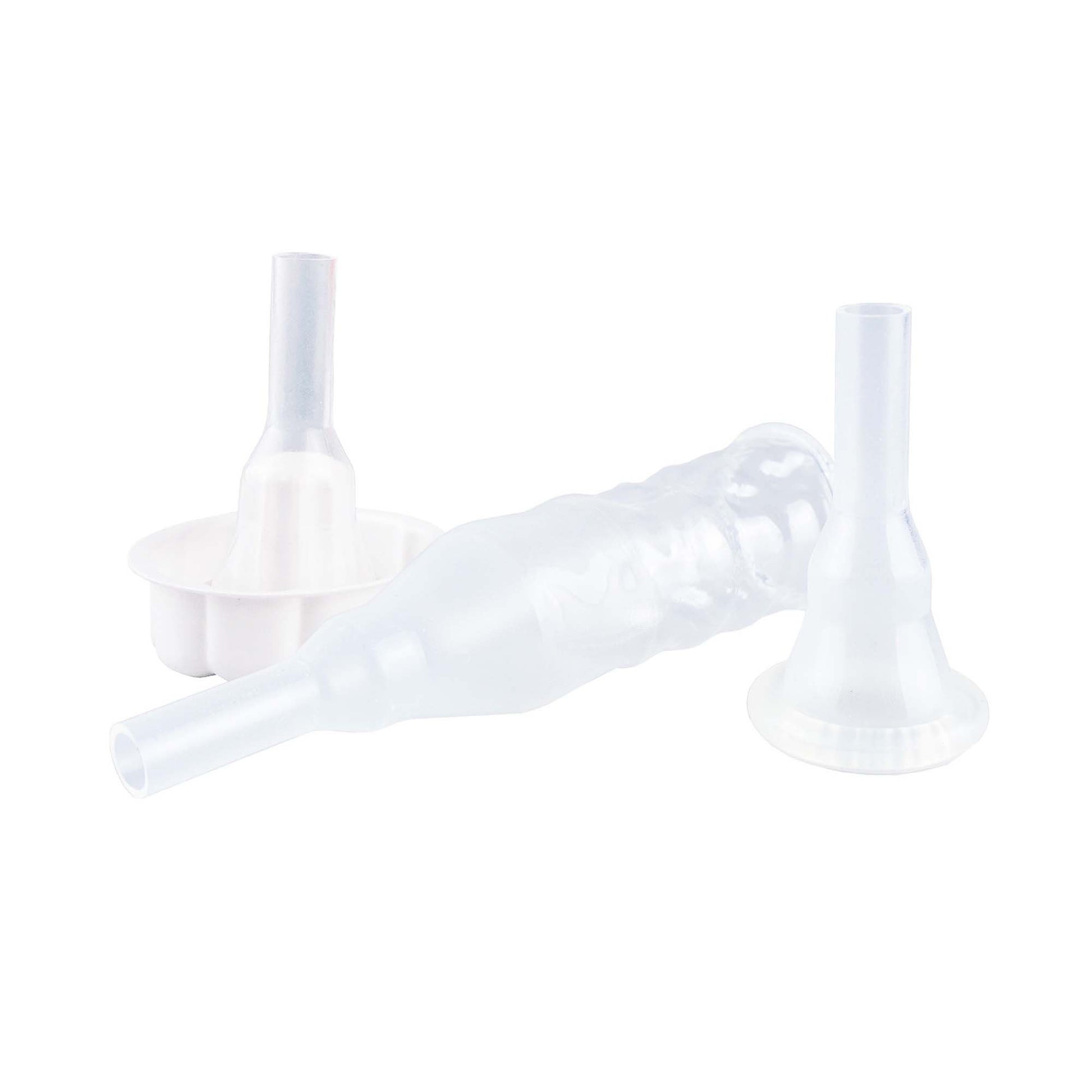 Intermediate external catheter designed for reliable male continence management. Features TruCath technology with extended adhesive backing for secure, all-day wear. The 32mm size accommodates standard anatomical requirements with a comfortable fit. Each box contains 100 units, with 6 boxes per case for convenient bulk ordering. Ideal for healthcare facilities and home care settings requiring dependable urinary collection solutions. Latex-free construction ensures compatibility for sensitive patients.
