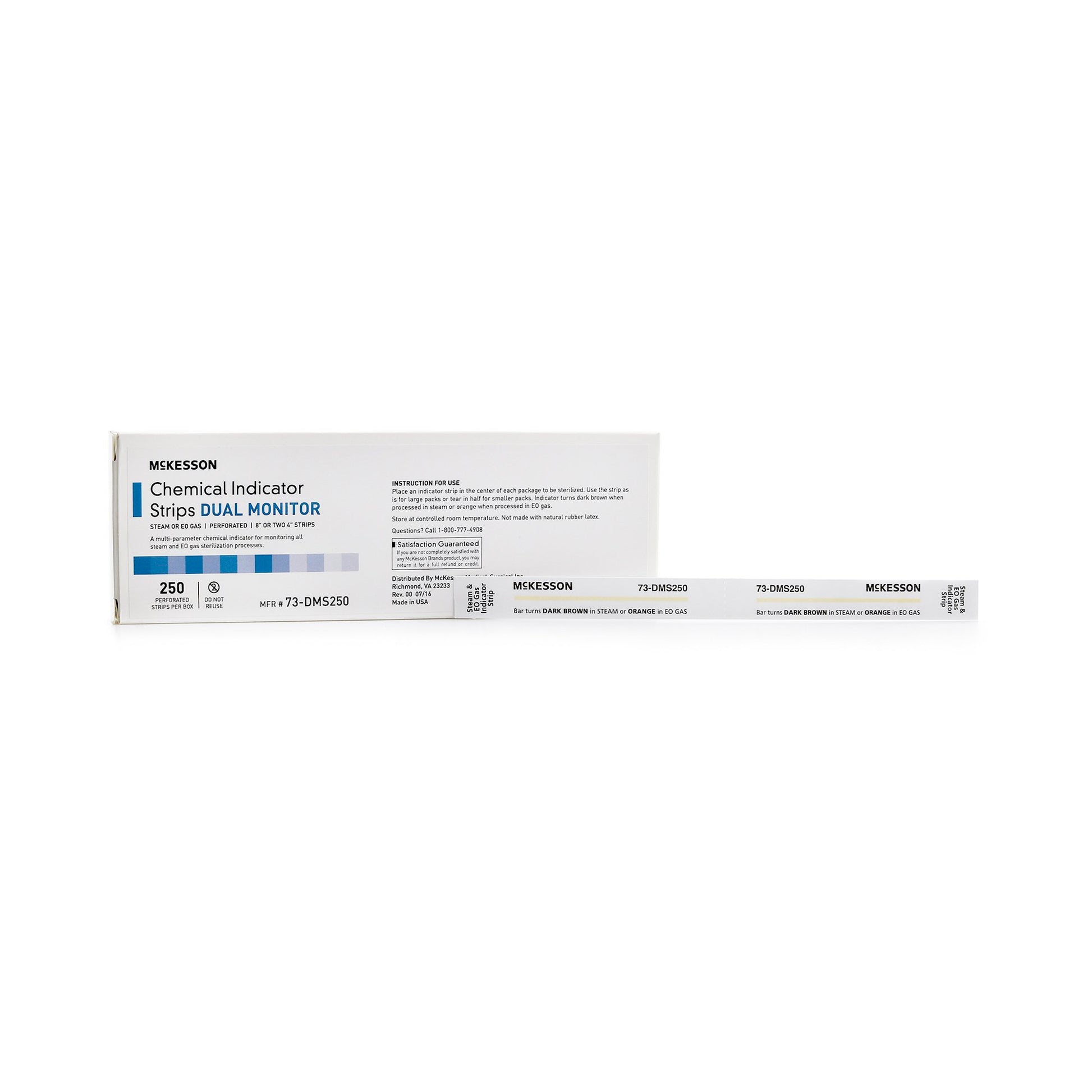 - Indicator strips monitor steam sterilizers operating at 250 – 285° F.