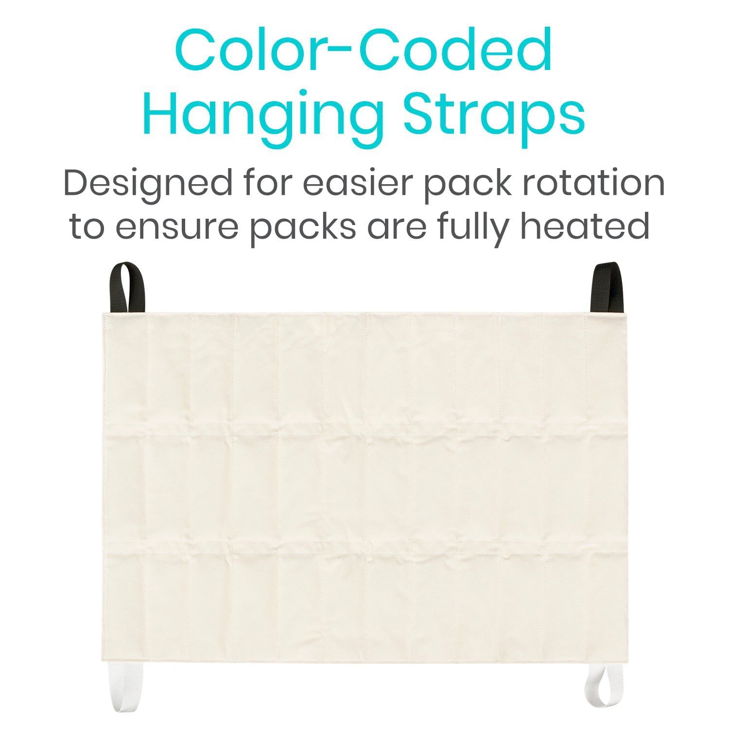 Designed for easily heating in hydrocollator units, each moist heat pack features four hanging straps. The straps are also color-coded for easier pack rotation, ensuring packs are fully heated for maximum relief.